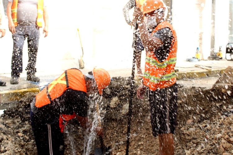 Los trabajos en un tubo de 36 pulgadas en la calle 64 con 59 y 57 del Centro Histórico resultaron en la reparación de dos grandes filtraciones, pues se detectó también otra avería en un conducto de menor diámetro, de cuatro pulgadas, con lo cual la Junta de Agua Potable y Alcantarillado de Yucatán (Japay) reafirma su compromiso con la encomienda del Gobernador Mauricio Vila Dosal, de brindar un servicio oportuno y de calidad.