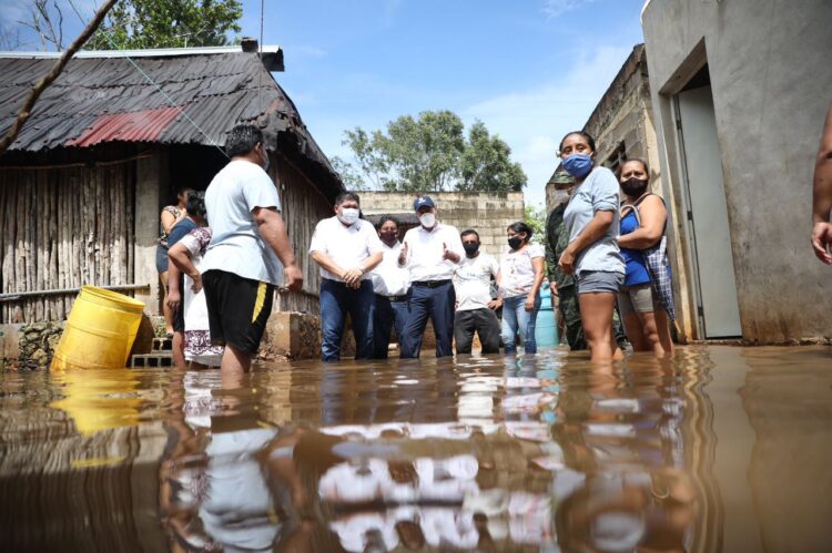 Después, en la comisaría vallisoletana de Pixoy, el Gobernador visitó el predio de Julio Noc Yam, donde viven 4 familias compuestas por 15 personas, en donde el agua subió de nivel hasta cerca de un metro, dejando a los habitantes de este lugar sin servicio de electricidad.