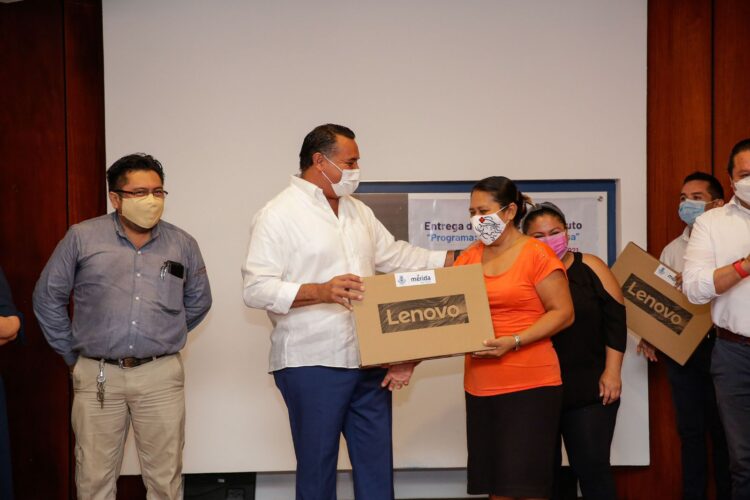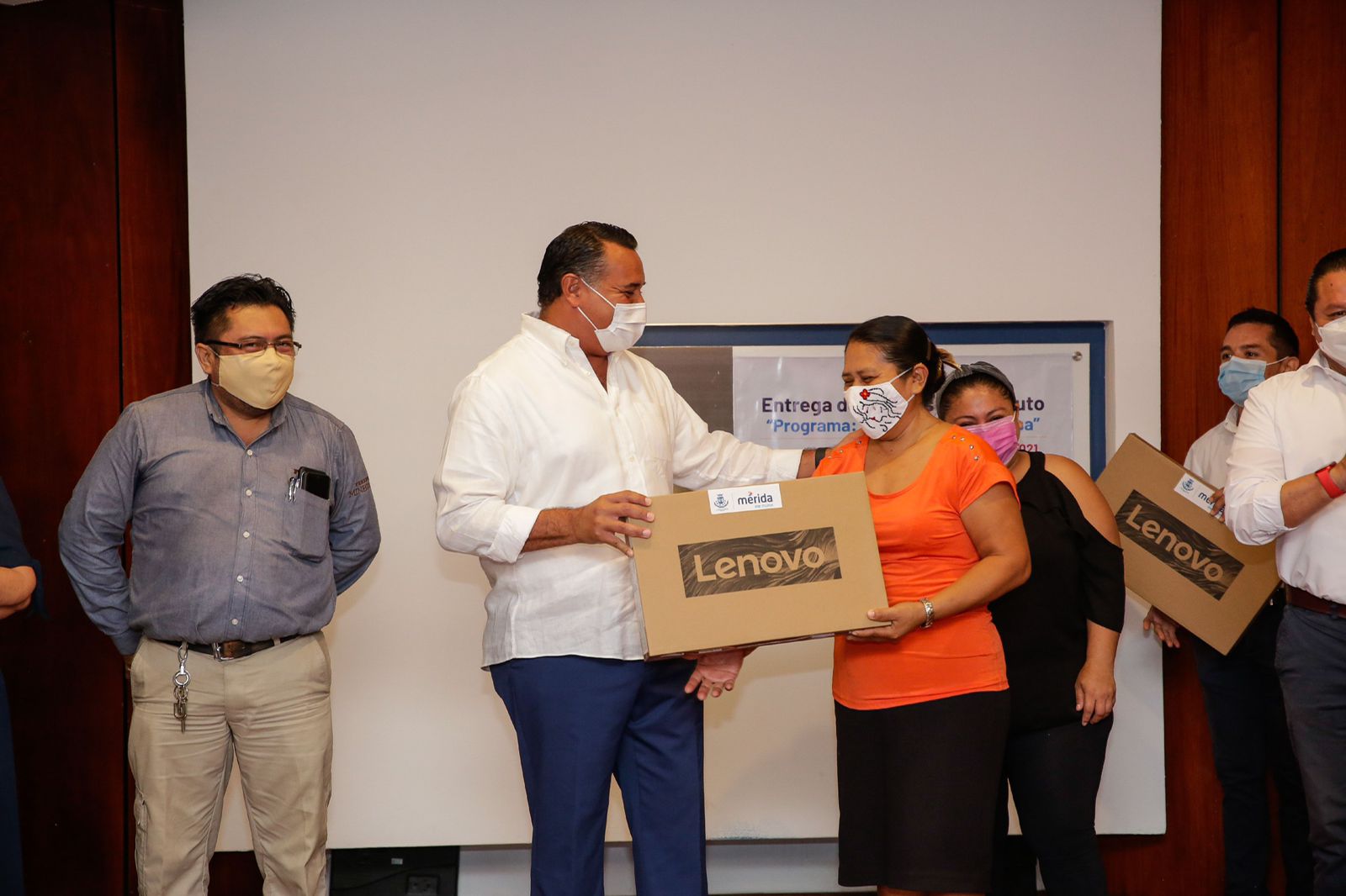 En estos tiempos difíciles que nos plantea la pandemia, en donde la forma más segura de interactuar es la virtual, el Ayuntamiento de Mérida se solidariza y se ocupa en apoyar a los padres de familia para la adquisición de computadoras que faciliten a sus hijos e hijas continuar con su preparación académica, indicó el alcalde Renán Barrera Concha.