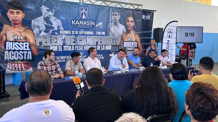 Lo anterior se informó en rueda de prensa encabezada por el alcalde Edwin Bojórquez Ramírez, quien estuvo acompañado del CEO de Max Boxing Promotores, Mario Abraham Xacur, el titular de la comisión de boxeo de Mérida, Jorge Martín Pech y dos de los protagonistas de la velada, Daniel «Zurdo» Garrido y el kanasinense Rusell Acosta Silveira.